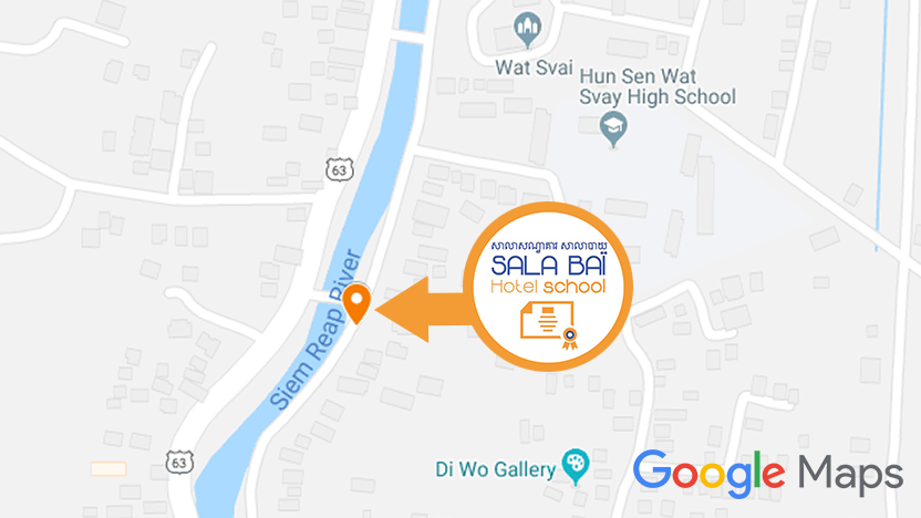 The Sala Baï training restaurant offers a selection of varied dishes (international and Khmer) to offer you an unforgettable culinary journey. By having lunch in our training restaurant, you support the training of the students who can practice in real professional conditions.