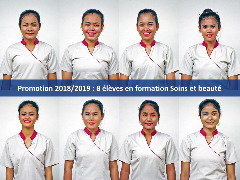Créée en 2015, la formation Soins et beauté est ouverte à huit élèves par promotion, dix à partir de septembre 2019. Cette formation est venue s’ajouter aux quatre autres (cuisine, service en salle, réception et service d’étage) pour répondre aux besoins croissants de l’industrie hôtelière de luxe. En effet si les massages font partie de la culture cambodgienne, les centres de beauté des grands hôtels recherchaient une main d’œuvre qualifiée dont les compétences répondaient aux exigences des standards internationaux. De plus, au vu de l’essor fulgurant du tourisme (le Cambodge a accueilli 701 000 touristes en 2003 et plus de 5, 6 millions en 2017, selon le rapport du ministère du Tourisme d’octobre 2018), la clientèle est de plus de plus en plus nombreuse.
