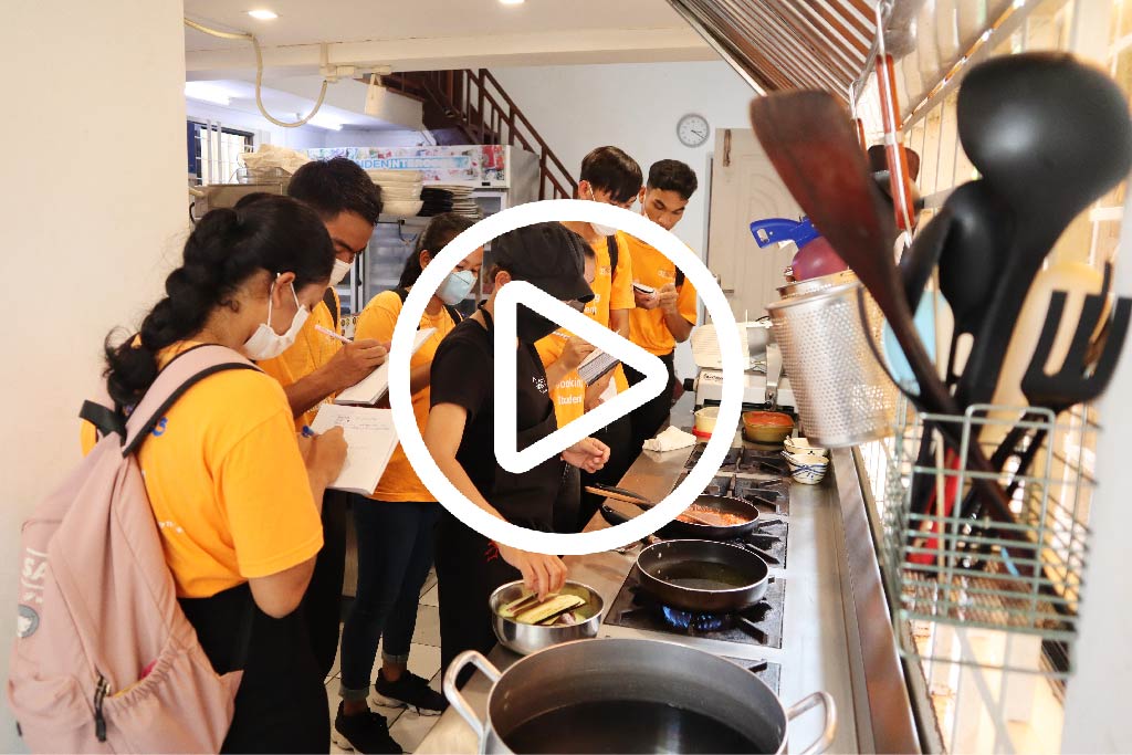 Afin de stimuler leur créativité et les sensibiliser à penser à prendre en compte les aspects budgétaires, marketing, opérationnels…, les élèves sont partis en immersion dans différents hôtels et restaurants de Siem Reap.