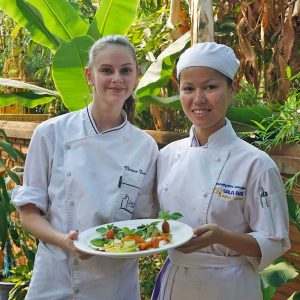 Par conséquent, des missions de mécénat de compétences sont ou seront mises en place pour chaque métier enseigné à Sala Baï. Le Lycée hôtelier de la Rochelle est ainsi partenaire de l’école. Chaque année, trois professeurs de cuisine et de restaurant et trois élèves effectuent une mission de deux semaines à Sala Baï. Apprentissage de nouvelles techniques, utilisation de nouveaux ingrédients, travail sur la mise en place des assiettes, sur la créativité des recettes tant sur le plan gustatif que sur le plan visuel, sont leurs principaux axes de travail. Ces deux semaines de transfert de compétences ont été couronnées par un dîner gastronomique : Great chefs meeet great students ( voir la vidéo de la soirée ). Ces missions du lycée hôtelier de la Rochelle vont se poursuivre et s’enrichir d’échanges. A partir de 2020, au moins deux professeurs de cuisine et de restaurant de Sala Baï iront se former pendant un mois à l’école hôtelière de la Rochelle.