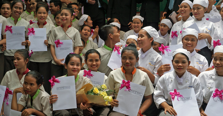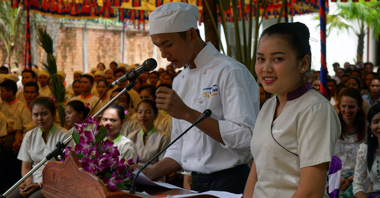 The next day, the whole school set off for the beaches of Sihanoukville in the Kompong Som province (Southern Cambodia). This end-of-year outing, financed out of the tips collected in the training restaurant and hotel, provided the opportunity for many of the students to experience the seaside for the first time and to contemplate a new and infinite horizon, the horizon of all that is possible. We wish them well on their way!